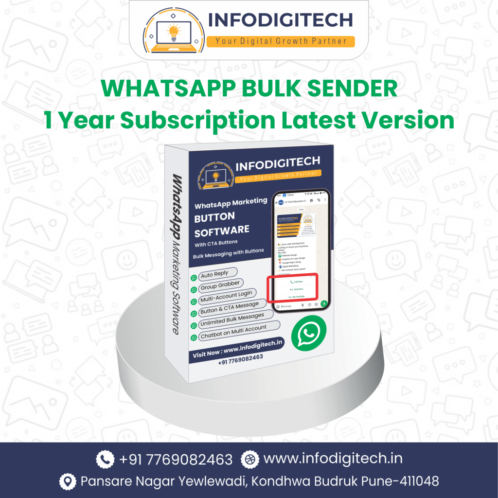 Welcome to InfoDigiTech – Your One-Stop Digital Solutions Partner We specialize in Website Design & Development, Graphic & Logo Design, Social Media Marketing, and WhatsApp Bulk Messaging, serving businesses across India.